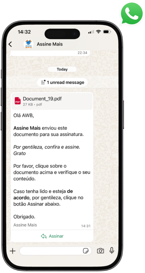 Leve mais agilidade para seus contratos com a assinatura eletrônica via WhatsApp ou e-mail, com validade jurídica e sem burocracia.